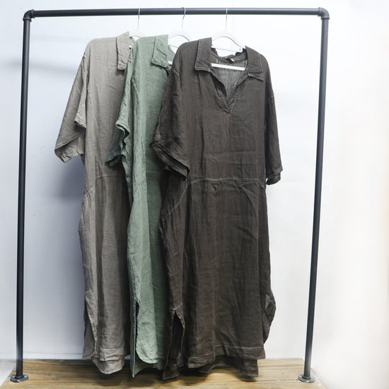 Fawn linen dress with v neck collar side pockets and slits 2 per pack CE84983F