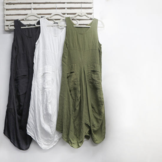 Gun Metal linen dress with front pockets and hem detail 2 per pack CT1633GM