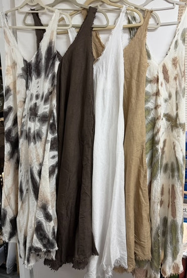 Tan linen sleeveless dress with fray v neck 2 per pack CO511221T